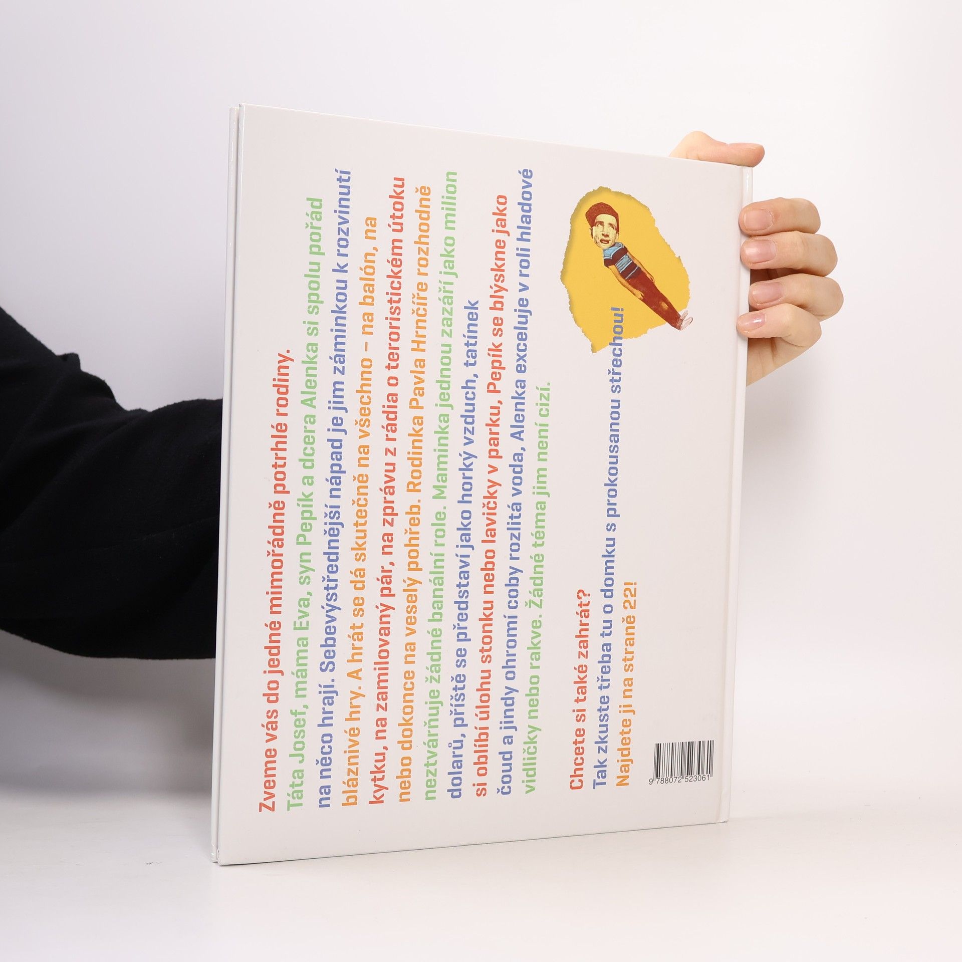 Kniha Pavla Hrnčíře zve čtenáře do jedné mimořádně potrhlé rodiny. Táta Josef, máma Eva, syn Pepík a dcera Alenka si spolu pořád na něco hrají. Sebeabsurdnější situace je jim záminkou k rozvinutí bláznivé hry. A hrát se dá skutečně na všechno - na balón, na kytku, na zamilovaný pár, zprávu z rádia o teroristickém útoku nebo dokonce na veselý pohřeb. Dvanáct her, jejichž rovnocennou součástí jsou ilustrace Michaely Kukovičové, je originálním literárním útvarem se specifickým humorem na hranici absurdity, který pobaví a inspiruje celou rodinu.