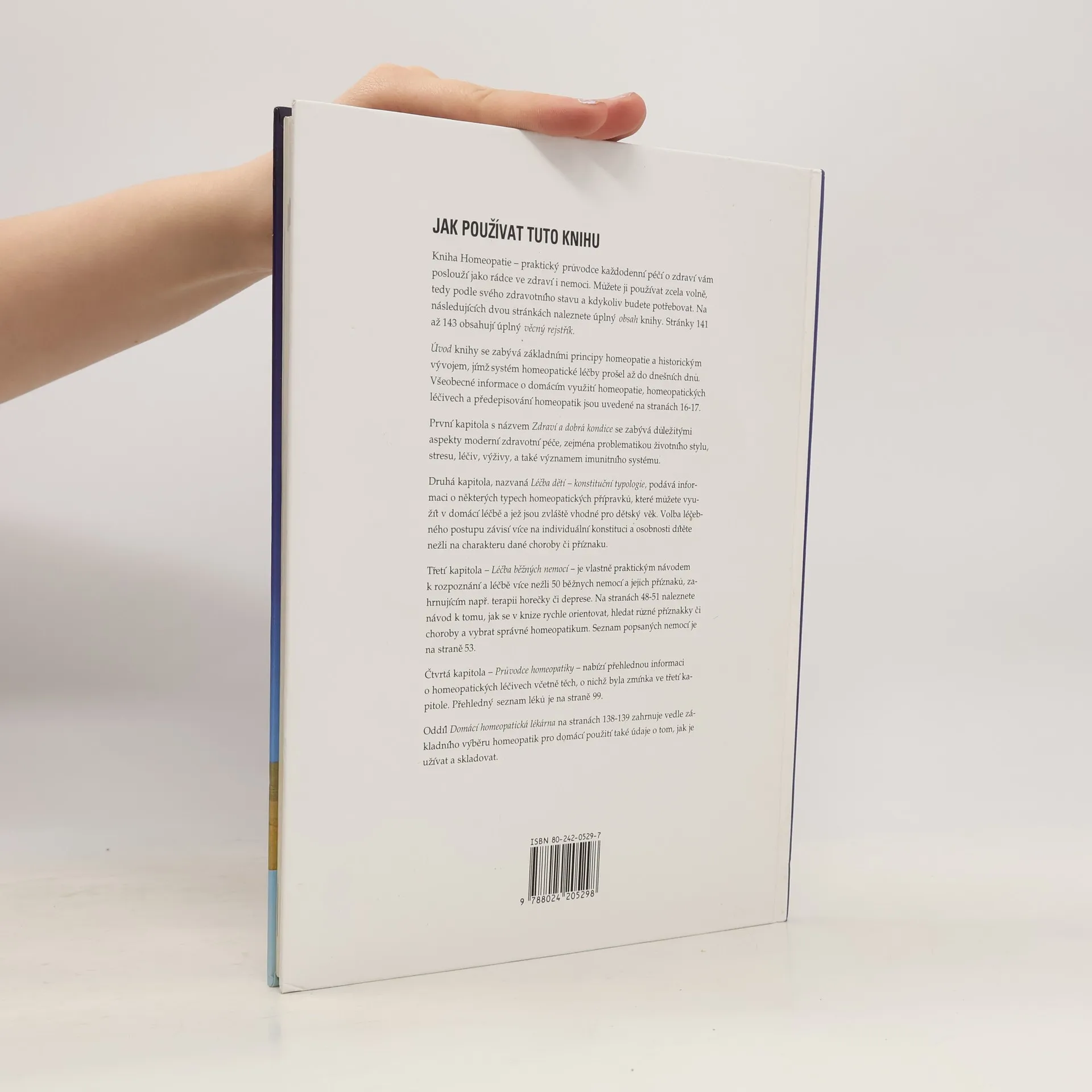 Stručně v kapitolách: První kapitola Zdraví a dobrá kondice Druhá kapitola Léčba dětí, konstituční typologie Třetí kapitola Léčba běžných nemocí Čtvrtá kapitola Průvodce homeopatiky A na stránkách 138 - 139 oddíl Domácí homeopatická lékárna zahrnuje vedle základních homeopatik pro domácí použití také údaje o tom, jak je užívat a skladovat Kniha od homeopata Hayfielda Robina autora snad italské národnosti podává vyčerpávají informace o této alternativní medicíně, která je stále v rozvoji a pomůže tam kde školská medicína nestačí.