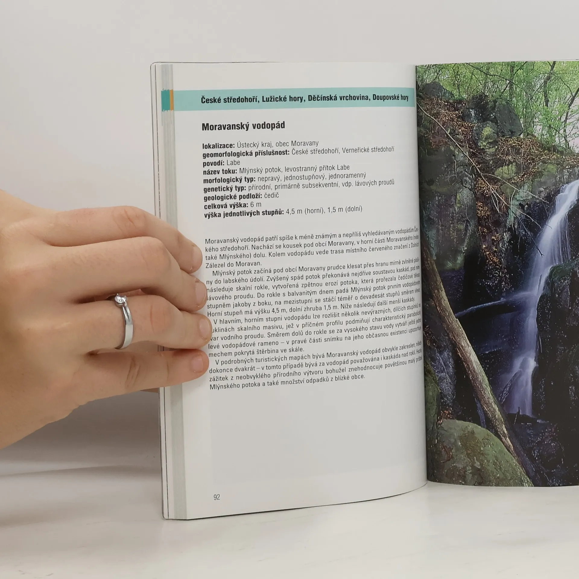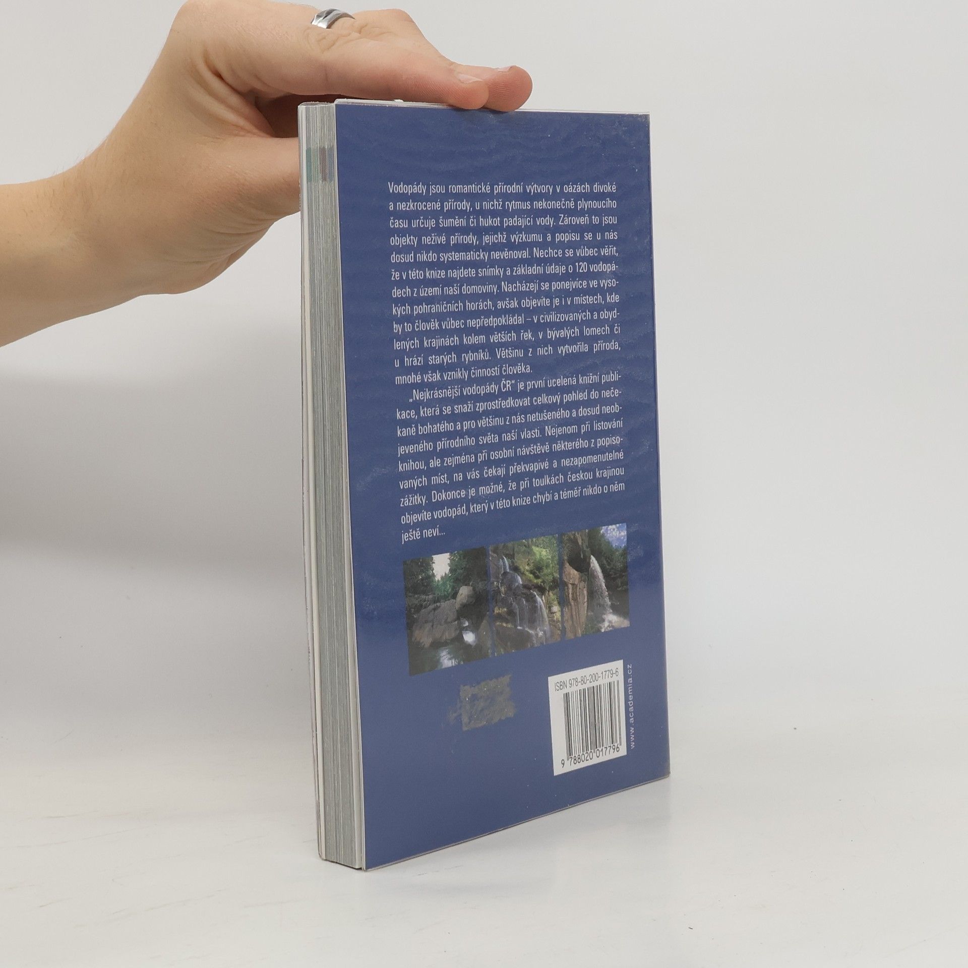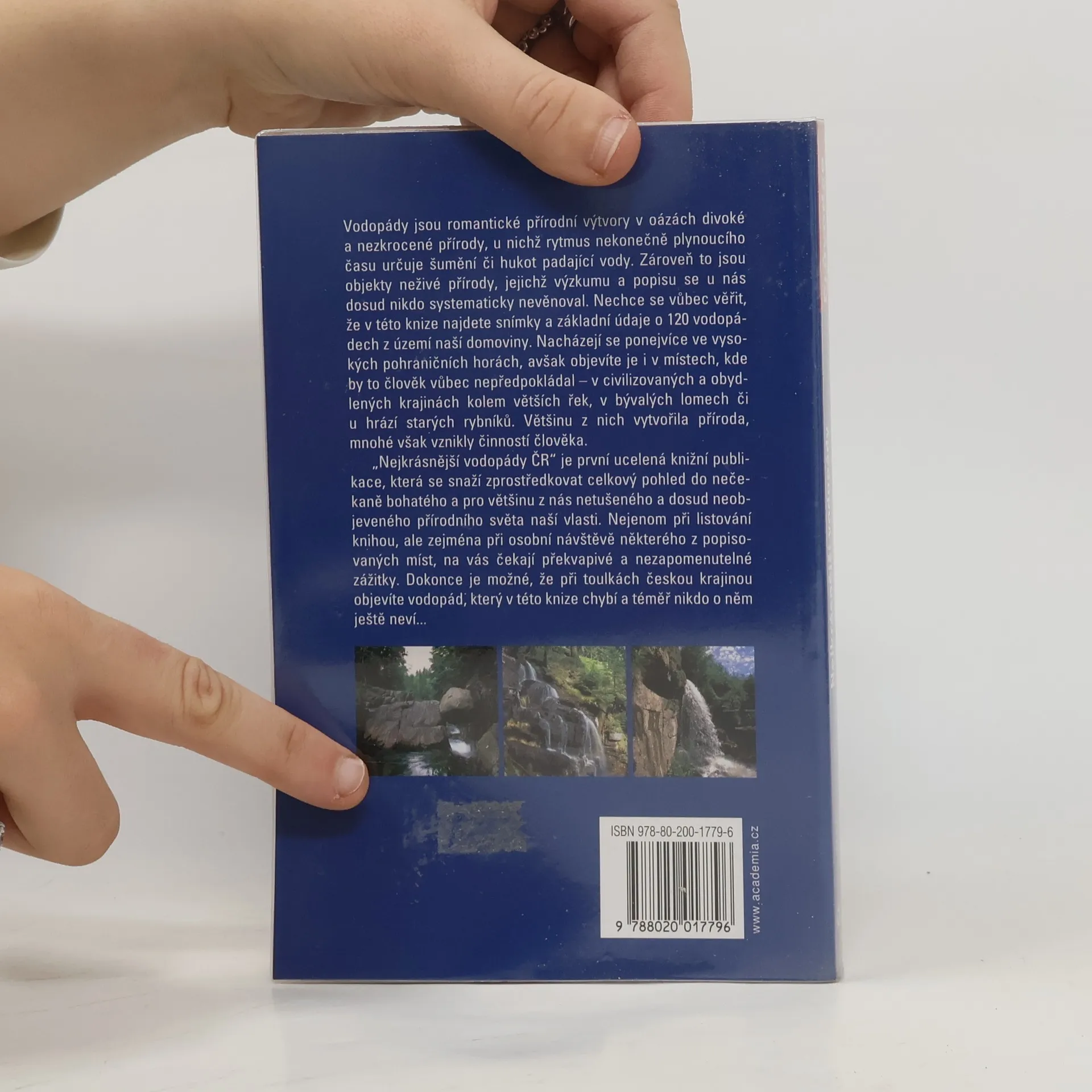 Publikace přináší ucelenou a dosud nikde nepublikovanou kolekci více než 100 lokalit s výskytem vodopádů z celého území ČR od Krušných hor po Beskydy. Originální téma, které u nás dosud nikdo komplexně nezpracoval, má v mnoha případech objevitelský charakter. Barevnou fotodokumentaci, která má blízko k umělecké tvorbě, doplňuje populárně laděná geomorfologická a geologická charakteristika jednotlivých lokalit a stručný popis přístupové cesty. V knize naleznete zajímavá místa, ktará mohou být dobrým tipem pro geocaching.