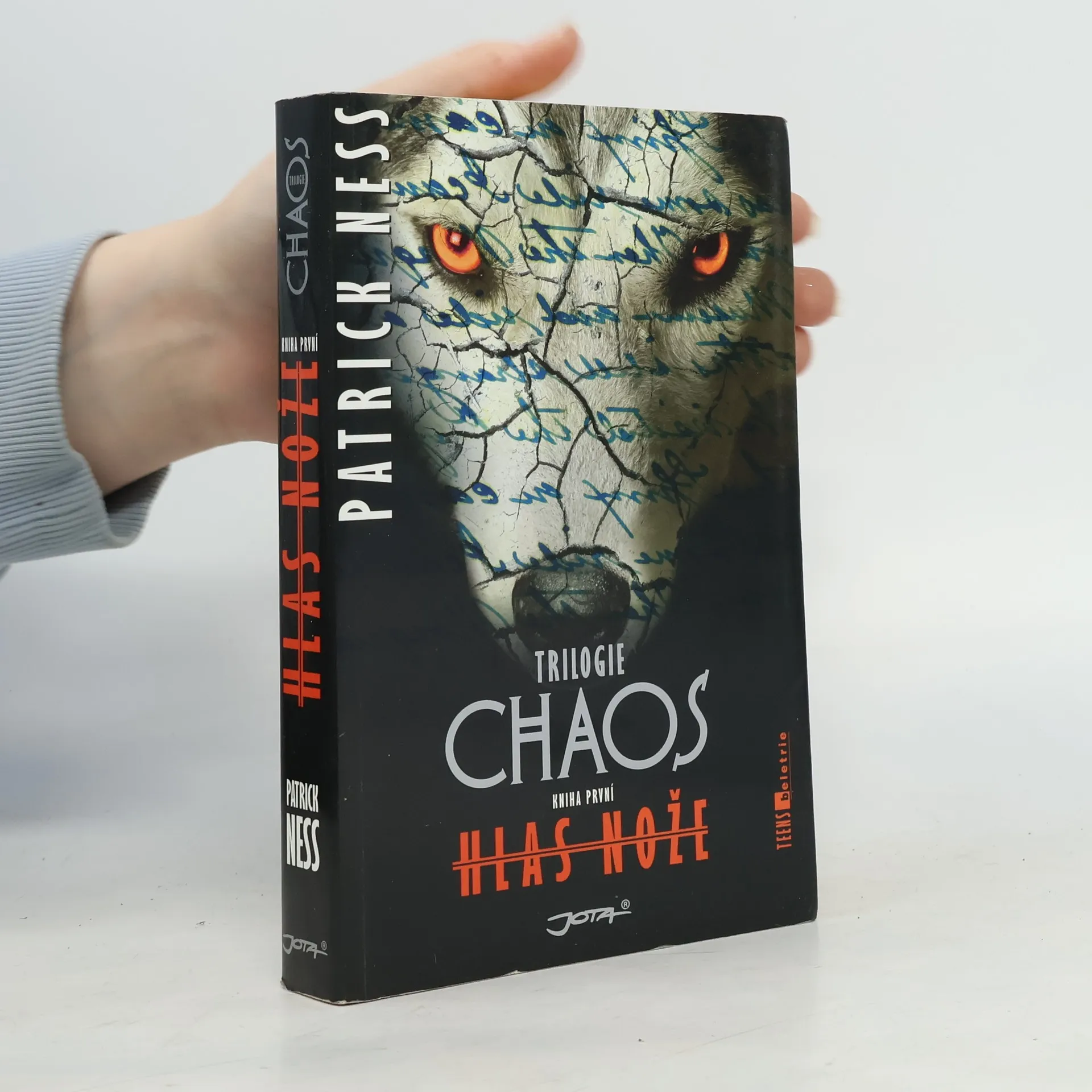 „Hluk je nefiltrovaný člověk a bez tohoto filtru je člověk pouze kráčejícím chaosem.“ Planetu Nový svět kolonizuje malá skupina osadníků z nepřátelského Starého světa. Po mnoha letech dochází k nečekanému zvratu. Domorodí obyvatelé se vzbouří, zaútočí na osadníky a usmrtí všechny ženy. Muže a zvířata náhle napadne podivný vir, který umožňuje slyšet myšlenky ostatních. Uniknout se podaří jen nevzdělanému mladíkovi Toddovi, který si stihl vzít na cestu pouze ruksak, lovecký nůž, deník, ale hlavně to vůbec nejdůležitější – svého věrného psího přítele. Ostatní obyvatelé v čele s šíleným knězem ho však pronásledují a kvůli nebezpečnému viru nebezpečí stále narůstá. Tento nelibozvučný myšlenkový mrak se nazývá Hluk a projevuje se nejen zvukem, ale i obrazem. Nikdy vás nenechá na pokoji a žádná vaše představa a ani jeden váš plán tak nejsou soukromé. Todd objeví v Hluku jakousi „díru“ a záhy zjistí, že žije v úplně jiném světě, než si dosud myslel. Postupně vychází najevo několik prazvláštních situací z minulosti a Toddova strastiplná cesta s armádou v patách se zdá jako nikdy nekončící příběh. Hlas nože je první kniha dystopické trilogie CHAOS, plná napětí, dramatických zvratů a nečekaných odhalení, ale i humorných situací.