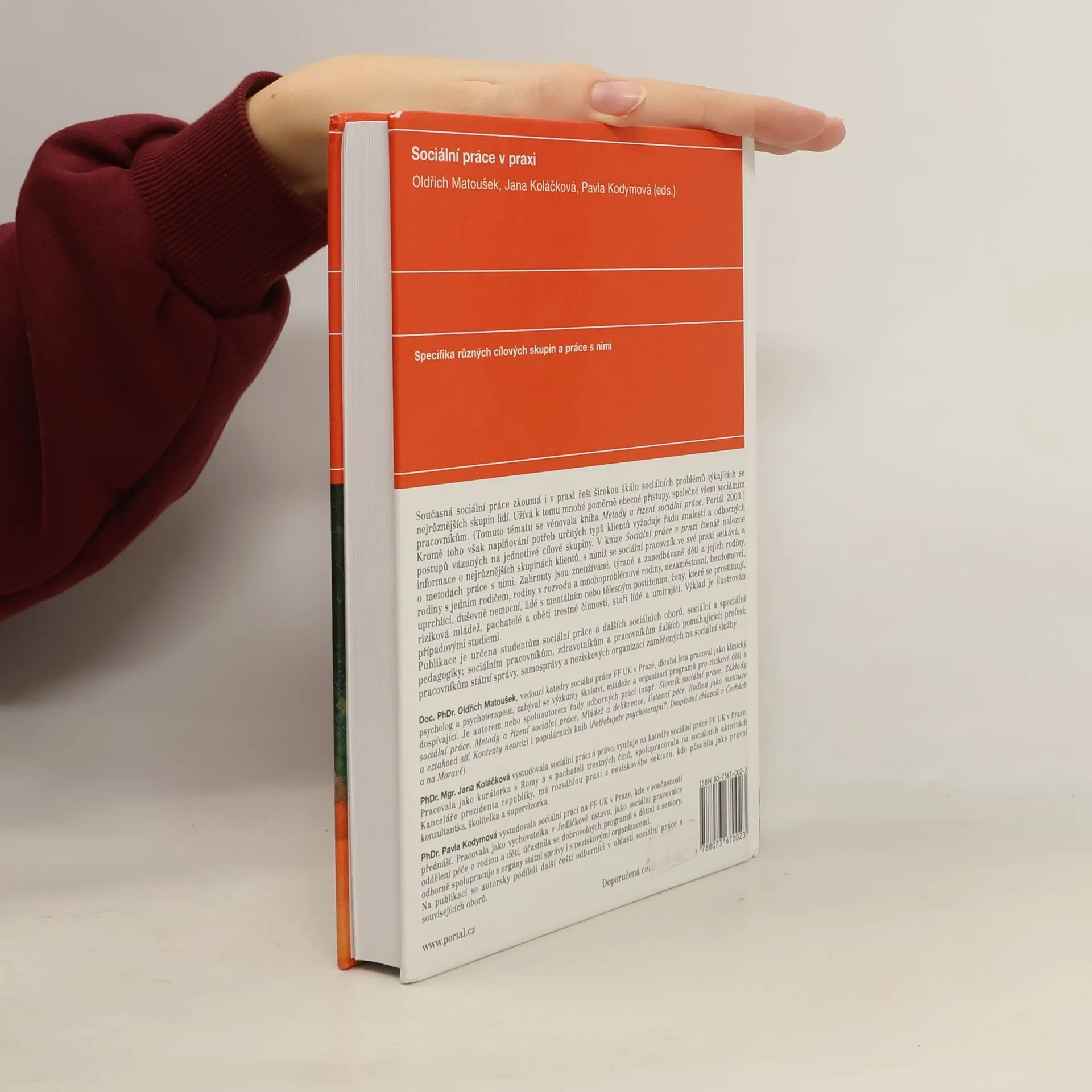 Specifika různých cílových skupin a práce s nimi. Současná sociální práce zkoumá i v praxi řeší širokou škálu sociálních problémů týkajících se nejrůznějších skupin lidí. Užívá k tomu mnohé poměrně obecné přístupy společné prakticky všem sociálním pracovníkům (jejich popisu se věnovala kniha Metody a řízení sociální práce, Portál 2003). Kromě toho však naplňování potřeb určitých typů klientů vyžaduje také řadu znalostí a odborných postupů vázaných na jednotlivé cílové skupiny. V této knize čtenář nalezne základní informace o nejrůznějších skupinách, s nimiž se sociální pracovník ve své praxi setkává, a o metodách práce s nimi. Zahrnuty jsou zneužívané, týrané a zanedbávané děti a jejich rodiny; rodiny s jedním rodičem, v rozvodu a mnohoproblémové; nezaměstnaní; bezdomovci; uprchlíci; duševně nemocní; lidé s mentálním nebo tělesným postižením; ženy, které se prostituují; riziková mládež; pachatelé trestné činnosti a práce v rámci probační a mediační služby; staří lidé a umírající. Výklad je ilustrován případovými studiemi, text je doplněn praktickými informacemi, kontaktními adresami apod.