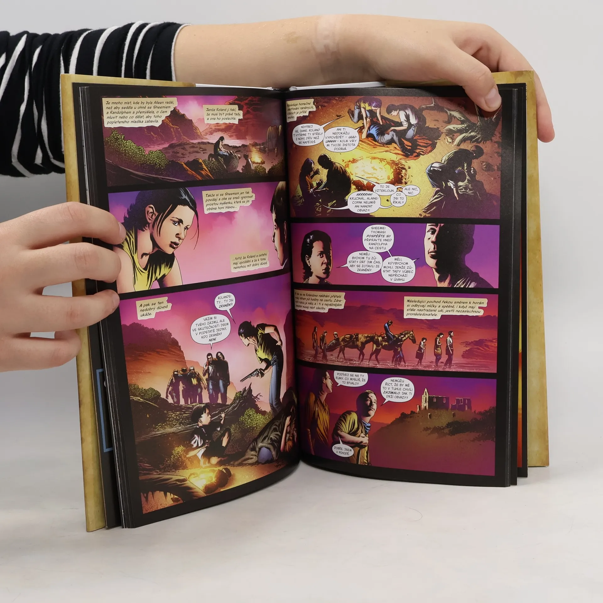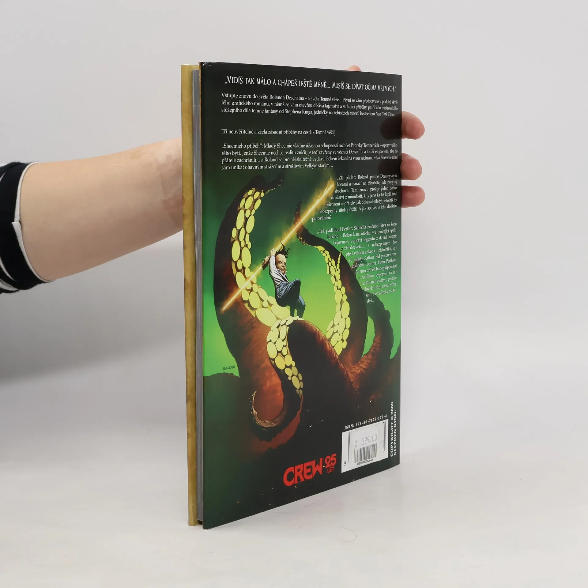 „Vidíš tak málo a chápeš ještě méně... Musíš se dívat očima mrtvých.“ Vstupte do světa Rolanda Deschaina a Temné věže v grafickém románu, který odhaluje děsivá tajemství a fascinující příběhy z mistrovského díla temné fantasy od Stephena Kinga. Tři klíčové příběhy na cestě k Temné věži přinášejí napětí a dobrodružství. „Sheemieho příběh“ sleduje mladého Sheemieho, který má schopnost rozbíjet Paprsky Temné věže, ale touží po záchraně od svých přátel, zatímco je uvězněn ve věznici Devar-Toi. Během čekání na pomoc se musí vyhýbat ohavným strážcům a strašlivému Velkému starému. „Zlá půda“ přivádí Rolanda do Desatoyských hor, kde narazí na tábořiště duchů. Zde prožívá vzpomínku na nebezpečný útok nadpřirozených nepřátel, který ohrožoval jeho ka-tet. Jak mladý pistolník přežil tento útok a jak souvisí s jeho současným putováním? „Tak padl lord Perth“ se odehrává po zničující bitvě na kopci Jericho, kdy Roland vypráví legendu o mladém Arthurovi Eldovi, který čelil vražednému obrovi lordu Perthovi. Tento příběh připomíná, že i když může člověk zůstat v boji sám, vždy má naději.