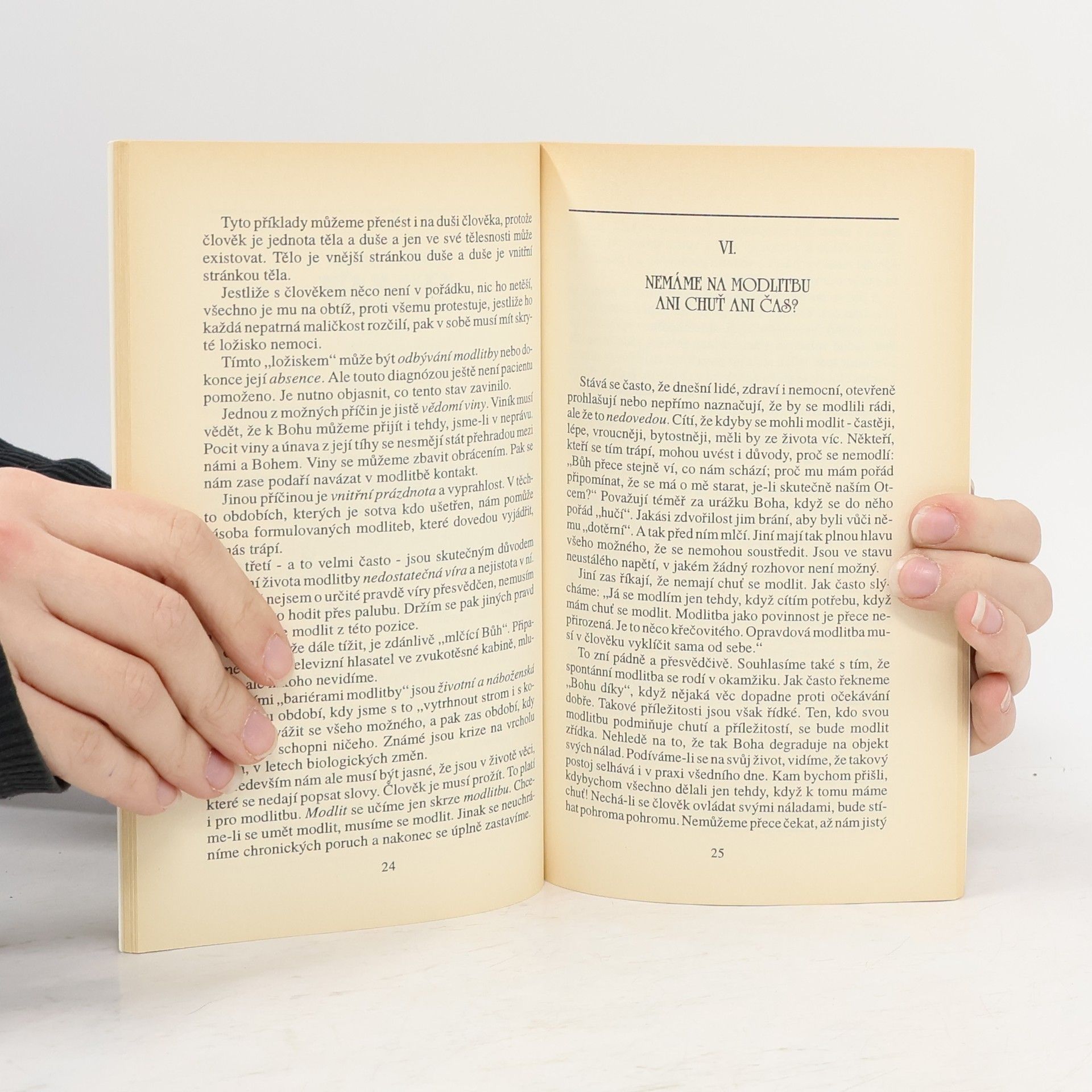 Uvažujeme-li o tom důkladně, není modlitba jen náboženskou, ale i vpravdě lidskou záležitostí, životní otázkou každého člověka. Modlitba je jakási lidská „prapotřeba”. Neexistuje žádná lidská situace, která by se nemohla stát modlitbou, rozhovorem s Bohem. Musíme jen otevřít dveře, přijmout ruku, která se nám nabízí. Úvahy obsažené v této knize se nám mohou stát skromnou pomocí při pokusu svěřit se Pánu a každý den to s ním zkoušet znovu.