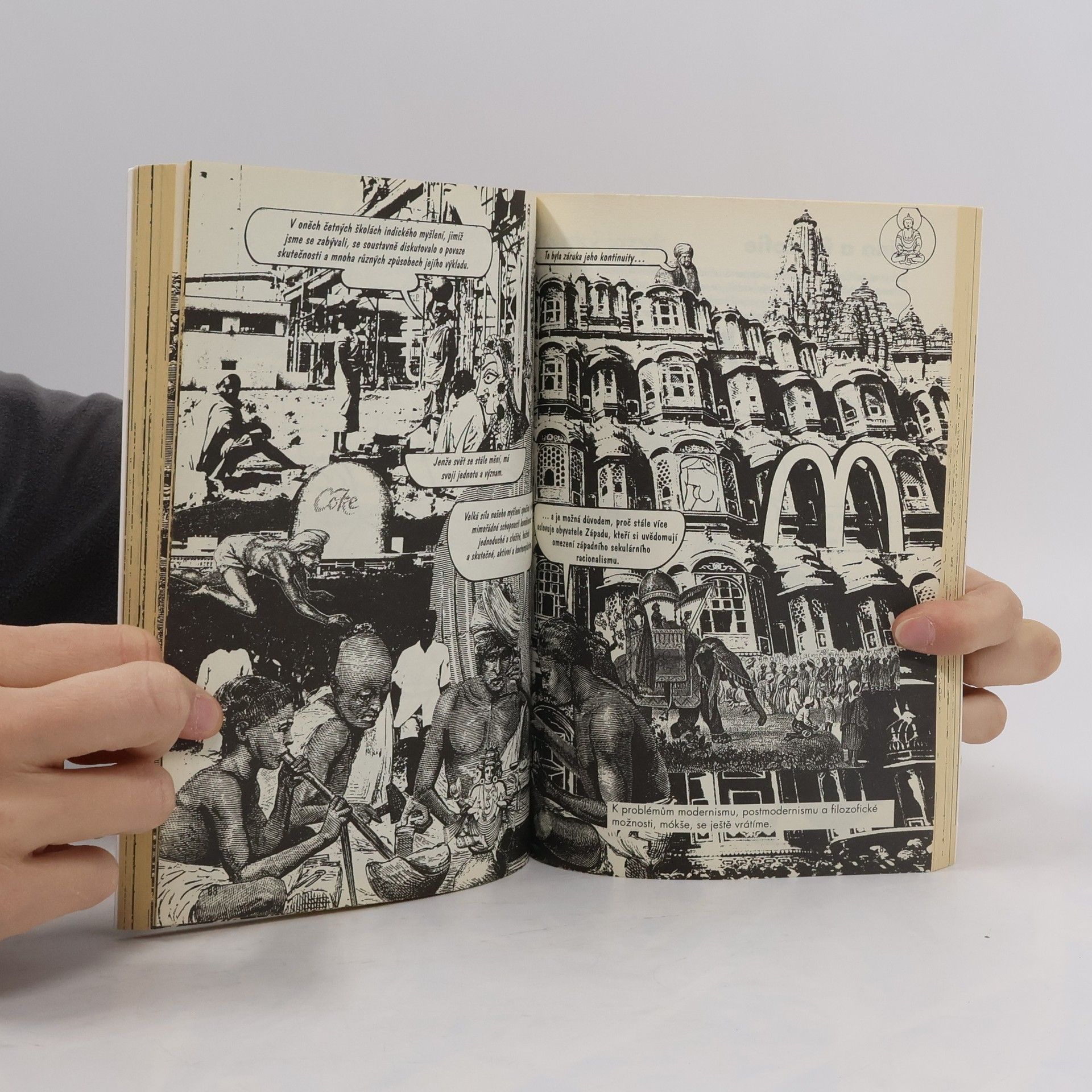 Kniha předkládá zábavnou komiksovou formou přehled důležitých myšlenek a konceptů východní filozofie. Zvláště se zabývá myšlenkovými proudy, které se zrodily v Číně a Indii, mají prastaré kořeny a dnes stále víc ovlivňují myšlení a náboženské vnímání západního světa. Brilantním a zároveň humorným způsobem se zde vysvětlují základy různých škol indického hinduismu a buddhismu nebo čínská konfuciánská a taoistická. Seznámíme se tak se základy východní eschatologie, neosobní etiky, s pojmy osvícení a nirvána v kontrastu se západním pojetím individualismu a vědeckého pohledu na svět. Kniha je určena studentům filozofie a religionistiky.